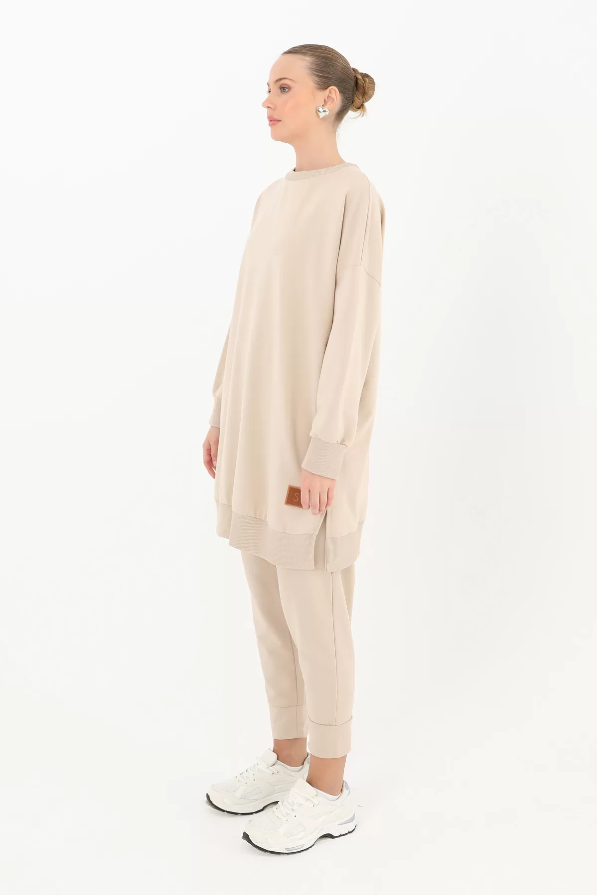Ruris Kadın Koyu Bej Bisiklet Yaka Uzun Kol Basic 2 İplik Zamansız Tunik