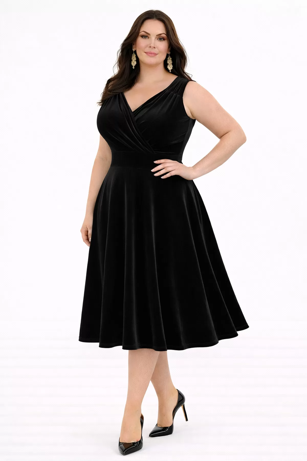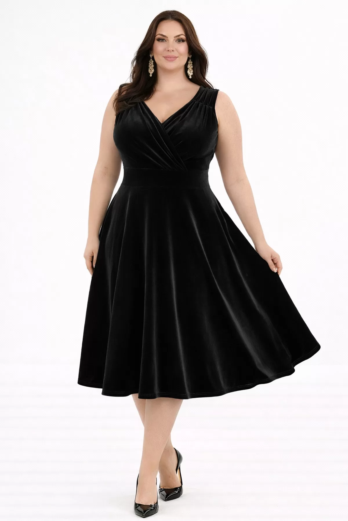 siyah kadife, büyük beden kadınların vücut hatlarını zarif şekilde